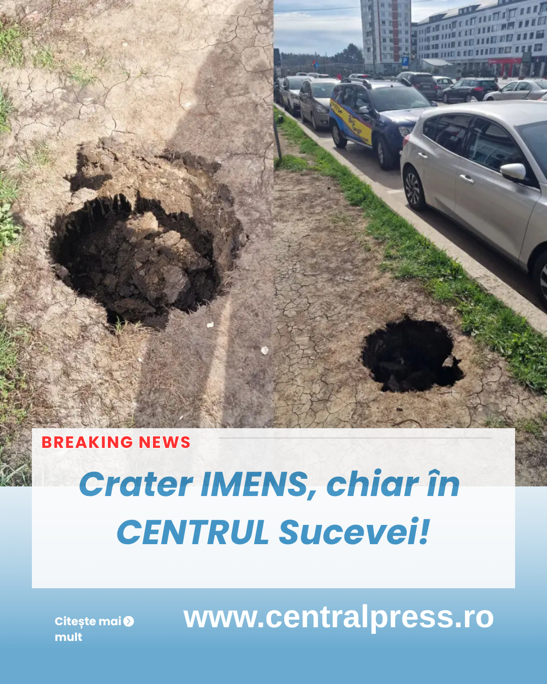 Sursele locale indică că avariile la conductele subterane ar putea fi responsabilul principal. În astfel de situații, apa scursă poate spăla stratul suport de sub asfalt, pavele sau spațiile verzi, ceea ce favorizează apariția unor gropi “din senin”.